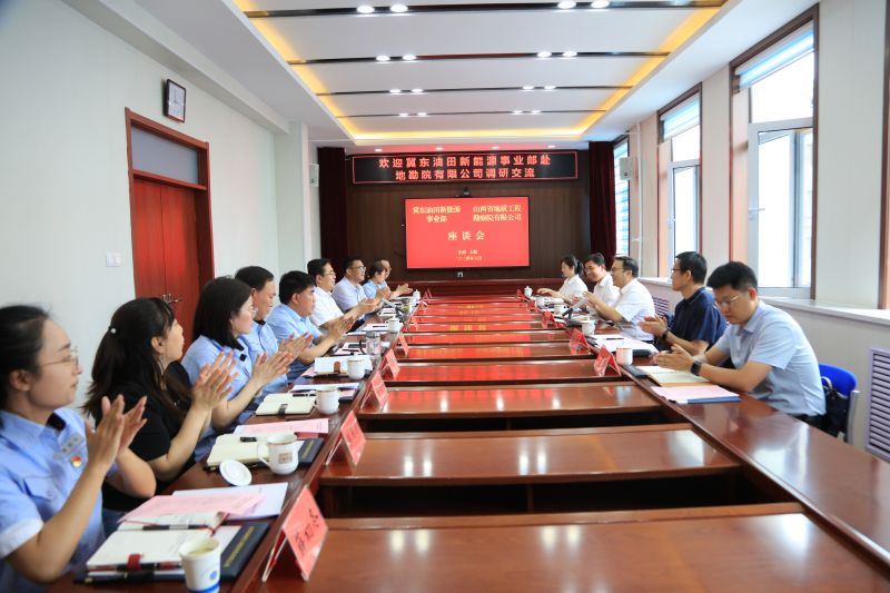 会上,赵政对冀东油田一行的到来表示了欢迎,并从历史沿革、业务范围、组织架构、人员构成、资质资信、生产经营等方面介绍了单位基本情况及天镇项目实施情况;赵忠新介绍了冀东油田新能源业务概况、地热项目案例及业务优势等情况;与会人员共同观看了《地勘院有限公司宣传片》和《天镇项目宣传片》,并就地热前期勘查、后期开发利用、钻探工艺、回灌技术等方面进行了交流探讨。