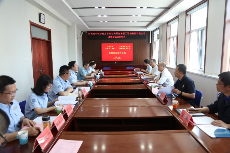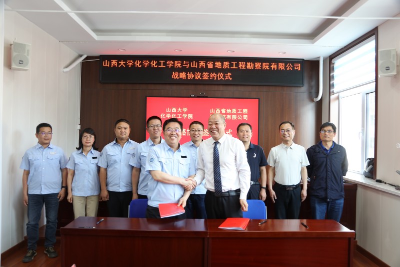 山西大学化学化工学院副书记马俊红、副院长王永钊、技术中心主任裴继凯、科研与外事办主任成萌,省地勘院有限公司副总经理安道智、副总经理杨晓东及部分内设部门负责人出席仪式并见证签约。