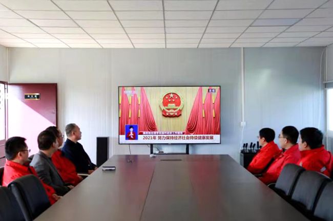【概要描述】 3月5日,十三届全国人大四次会议胜利开幕,我队水井公司党支部由于支部党员相对分散的实际情况,特安排支部委员利用项目部现有条件,分别组织天镇试验电站及大同西南部地热资源预可行性勘查项目的一线党员集中收看了会议直播,让地勘一线党员干部更直接地了解和学习了党和国家的重大方针政策。