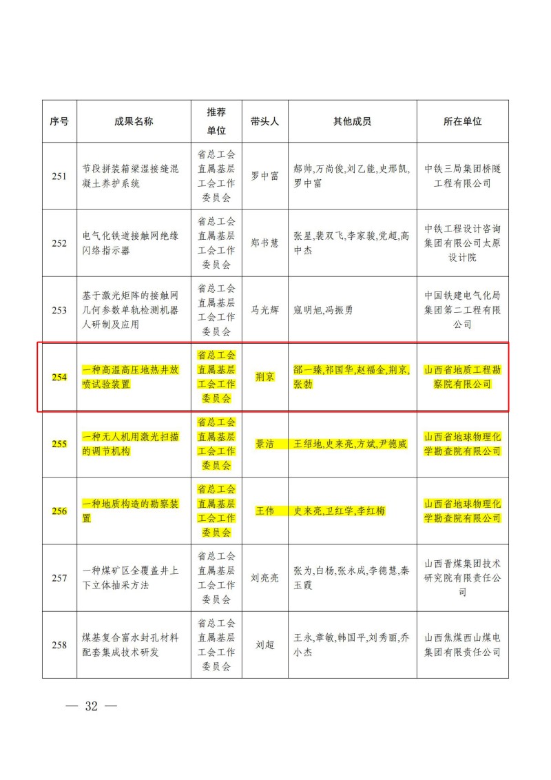 近日,山西省总工会公布了2025年全省“五小”创新大赛优秀成果和先进集体名单。山FH开户自主研发的发明专利“一种高温高压地热井放喷实验装置”,荣获创新大赛二等奖。