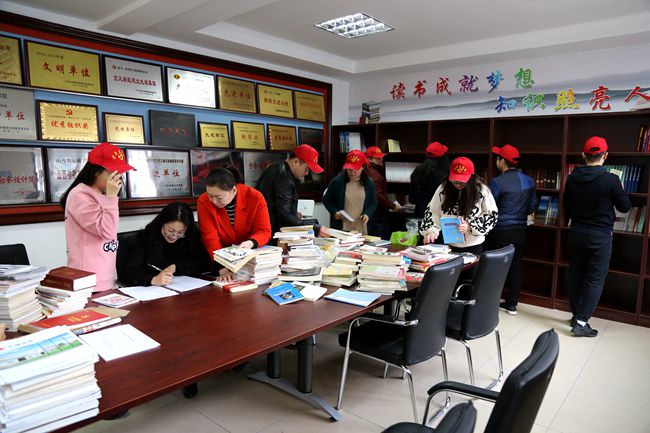 志愿者们先将图书捐赠登记表和所捐图书完成清点交接,又配合工作人员将阅览室的所有图书进行了整理并分类摆放。