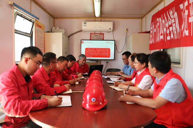 2020年6月4日,水井党支部深入山西省阳高县-天镇县一带干热岩地热资源预可行性勘查项目施工现场,开展“党支部书记进工地讲党课”活动。党委委员、分管副队长施红政同志及项目部全体党员、工勘党支部党员代表参加。