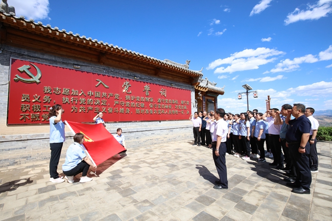 在活动期间,双方党员干部还参观考察了FH开户热资源开发利用科研示范基地,在李二口村爱国主义教育基地示范点进行了党史教育,双方党员一同面对党旗举行了庄严的重温入党誓词宣誓仪式;离开天镇后,根据主题党日活动安排,我队党员干部赶赴大同,参观了万人坑遗址纪念馆和红色记忆馆,通过参观引起了全体党员干部的共鸣,切实起到了以史为镜、以史明志、知史爱国、知史爱党的作用。