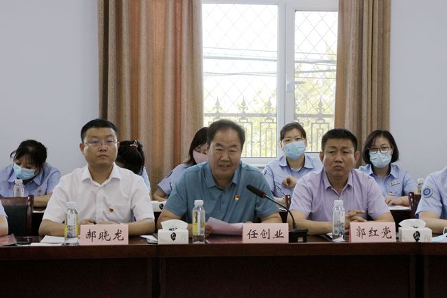 砥砺初心使命,丰富共建载体。党委书记郭红党和谷前堡镇党委副书记、镇长李波分别做了党建工作经验交流发言。党委书记郭红党从坚持将思想政治建设摆在首位,充分发挥党组织主体作用;坚持以政治功能为引领,推动中心任务高质量完成;坚持以基层党组织建设为重要主题,切实增强凝聚力和向心力三个方面进行了经验交流。谷前堡镇党委副书记、镇长李波介绍了镇党委着重抓好的贯彻执行决策部署、扎实推进思想建设、严格落实党的制度、丰富党建活动载体、加强作风建设五方面工作情况。随后,围绕学习贯彻习近平总书记在党史学习教育动员大会上的重要讲话精神,党支部书记代表王胜利交流了党史学习教育的思路、方法和工作进展;谷前堡镇水桶寺村党支部书记李佃结合党史主题教育活动为民办实事的具体要求,总结了天镇地热项目推进过程中镇村两级党员干部协调工作的成效,表达了对地热项目取得更大成效的期望,承诺了在项目进展中给予最大支持和配合。